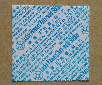防黴片包含以下重量百分比的原料:二氧化氯2~10%,香精香料2~10%,聚(jù)烯烴粒子40~85%,環糊(hú)精2~10%。通過所述環保、緩釋型防黴片製備方(fāng)法,使上述(shù)防(fáng)黴混合物位於兩層可降解塑料(liào)或紙片層之間並壓合而成一片(piàn),使防黴(méi)混合物從防黴片周邊緩慢釋放,藥效可達半年至久,從而有效的(de)發揮了防黴片的功效。